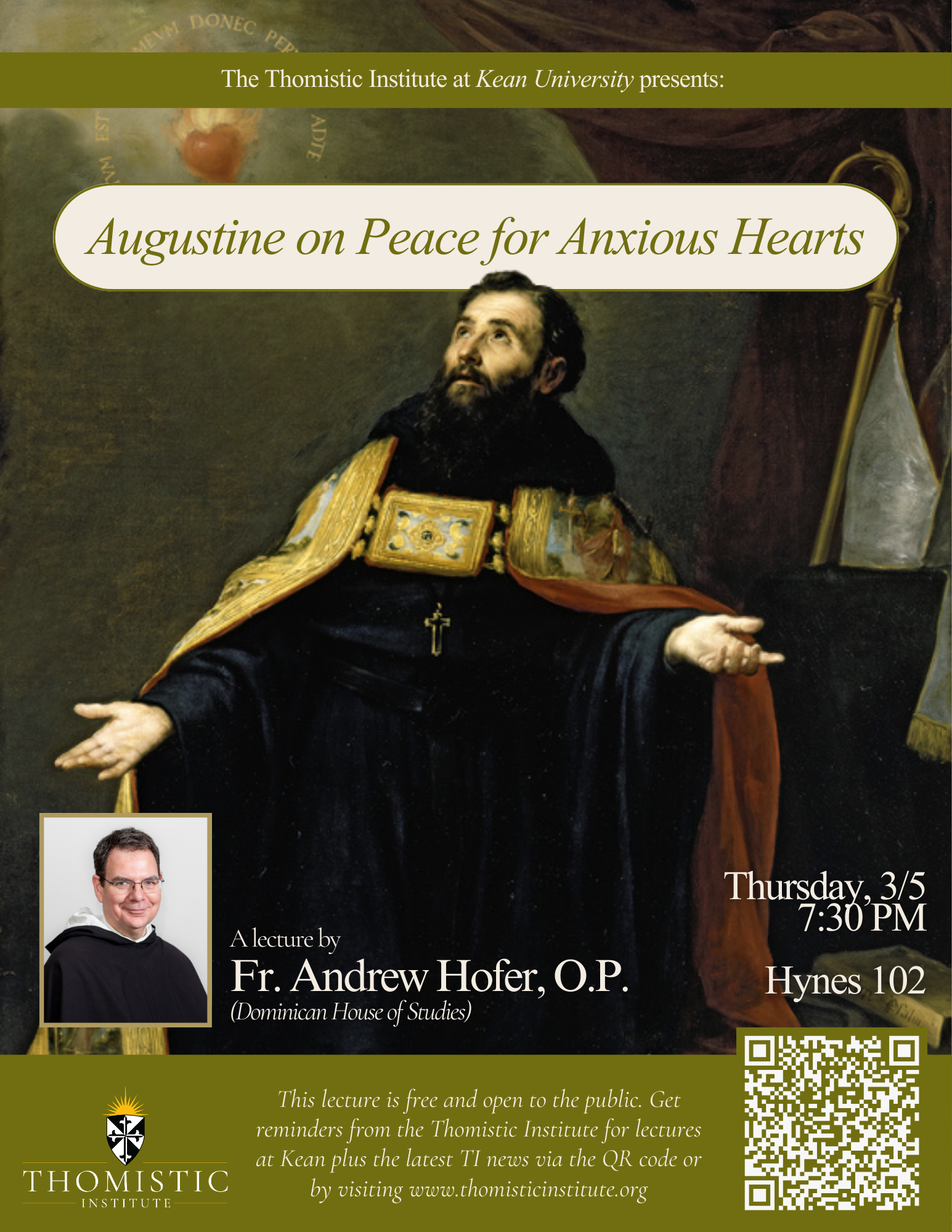 The Thomistic Institute’s Chapter at Kean University as well as Campus Ministry invites you to join us on Thursday, March 5, 2026 for a lecture by visiting speaker Fr. Andrew Hofer, O.P. from Washington, D.C. The lecture will begin promptly at 7:30pm.
